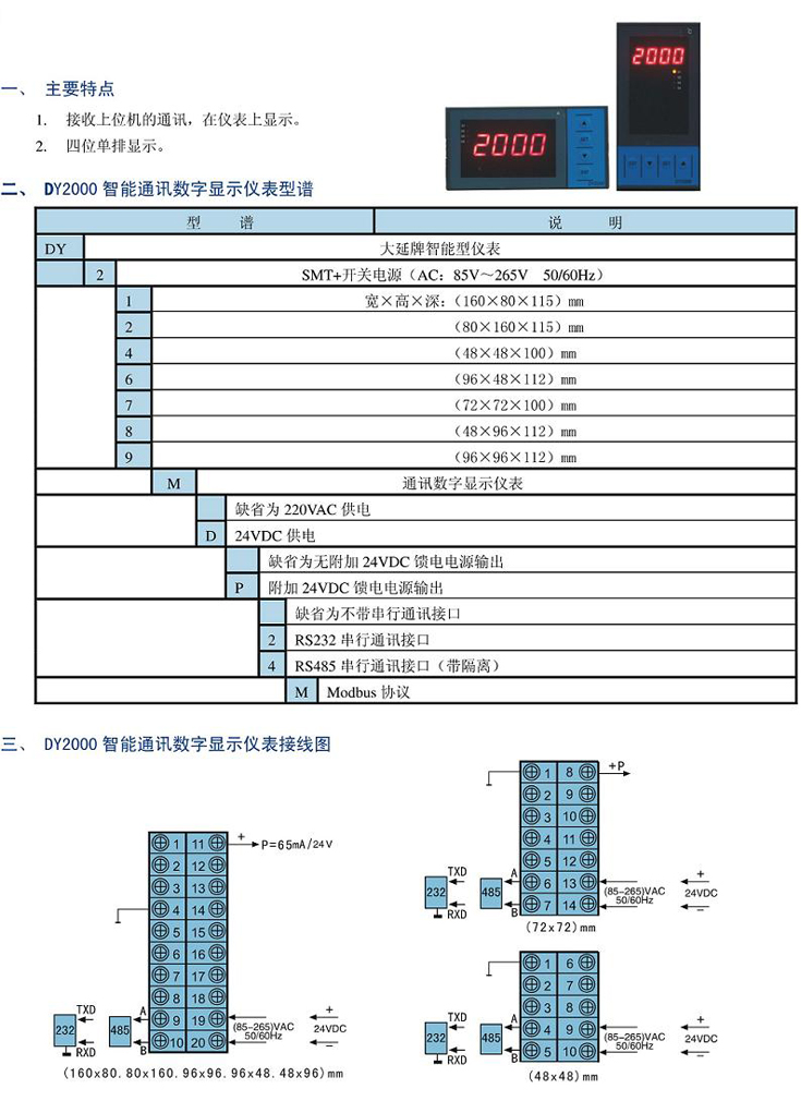 • 產(chǎn)品名稱:DY2000(M)智能通訊數(shù)字顯示儀表