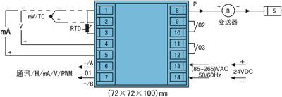 3. (72×72×100)mm、(48×48×100)mm的儀表輸入/輸出接線圖