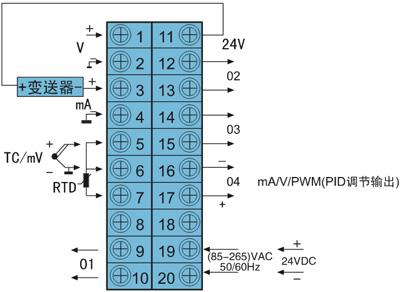 分時(shí)段PID調(diào)節(jié)數(shù)字顯示儀表接線圖