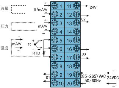 通訊/打?。?font face="Times New Roman" style="margin: 0px; padding: 0px;">O1)+報(bào)警(O2)+(4~20)mA變送輸出(O3)