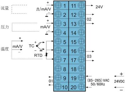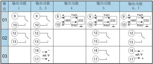 通訊/打印(O1)+報(bào)警(O2)+(4-20)mA變送輸出(O3)