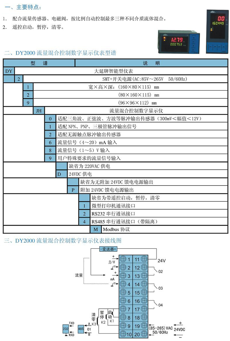 • 產品名稱:DY2000(JH)流量混合控制數字顯示儀表