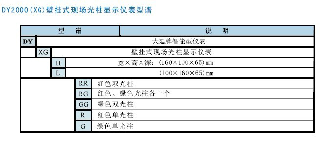 • 產(chǎn)品名稱:DY2000(XG)壁掛式現(xiàn)場(chǎng)光柱顯示儀表