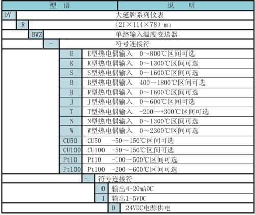 三、   DYR系列單路輸入溫度變送器型譜