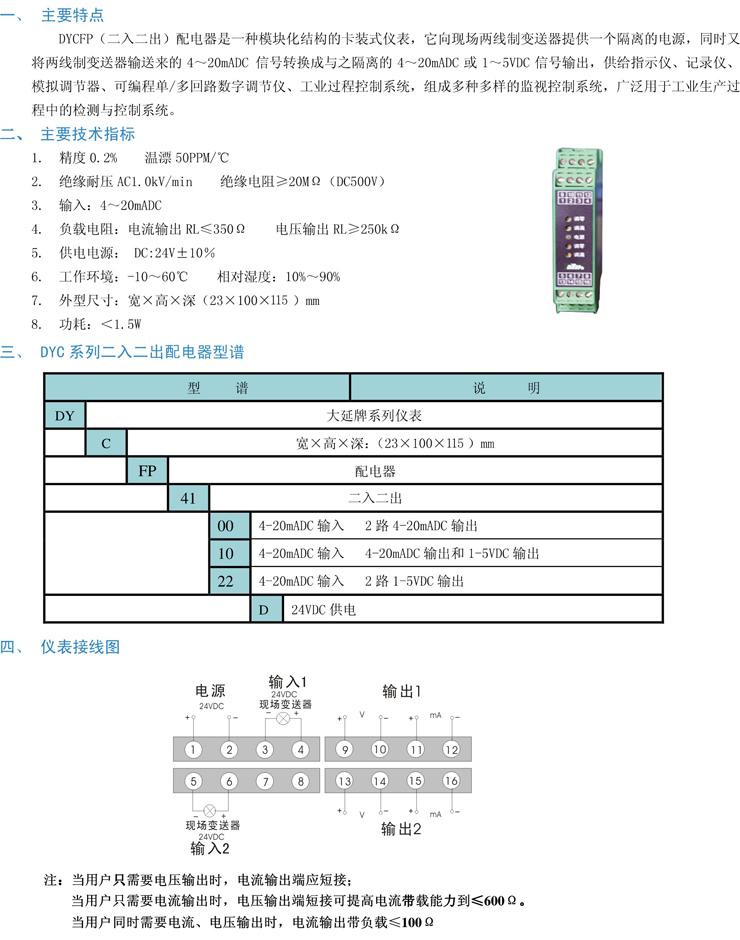 • 產(chǎn)品名稱:DYC(FP)系列卡裝二入二出配電器