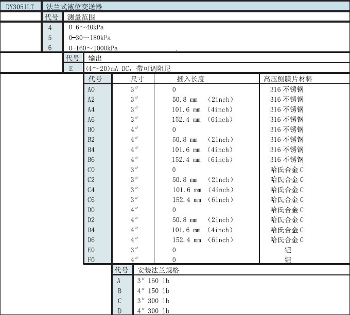 • 產(chǎn)品名稱:DY3051LT法蘭式液位變送器
