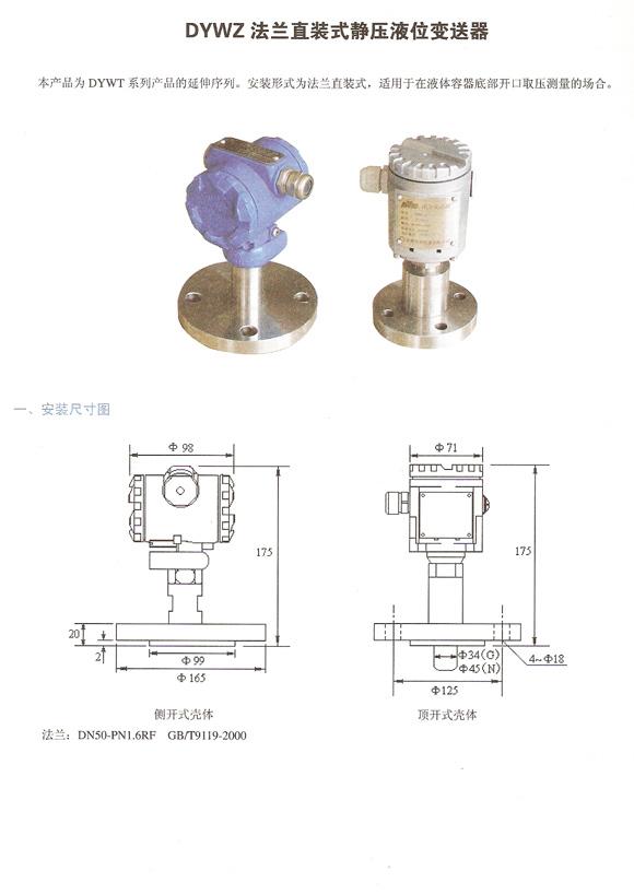 • 產品名稱:DYWZ601法蘭直裝式靜壓液位變送器