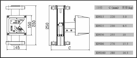 c)垂直安裝式PTFE型外形尺寸及重量