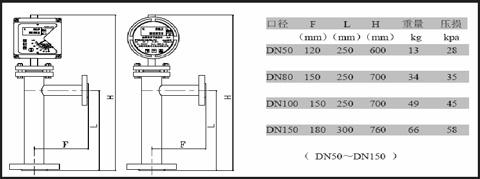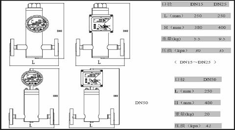 DYFT2側(cè)進側(cè)出型外形尺寸、重量及壓損        確選用金屬管浮子流量計及附加結(jié)構(gòu),對于系統(tǒng)的穩(wěn)定運行及測量精度至關(guān)重要。在流量計的選型及安裝中應(yīng)特別注意以下幾點: