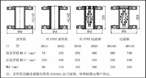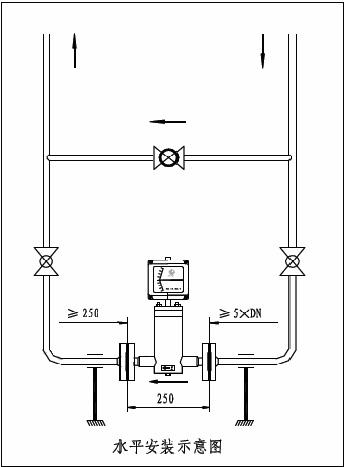 7) 安裝流量計的位置應(yīng)保證入口有≥5DN 的直管段,出口不≤250mm的直管段;如介質(zhì)中含有鐵磁***物質(zhì),應(yīng)在流量計前安裝磁***過濾器。
