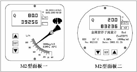 M2 型指示器的上述功能由安裝在外殼內(nèi)的磁傳感器、MCU 微處理器及相應(yīng)的功能電路所構(gòu)成的HTD 磁測變送器完成,該變送器有一個雙行八位LCD 液晶顯示屏,只須三鍵:INC---加鍵,用于參數(shù)的修改和選擇;SET---功能鍵,用于主菜單的循環(huán)顯示和參數(shù)設(shè)定值的確認;DEC---減鍵,用于參數(shù)的修改和子菜單的進入,即可完******機對話。在儀表口徑所允許的測量范圍內(nèi),用戶可現(xiàn)場根據(jù)工藝參數(shù)的變化,進行現(xiàn)場標定。M2 型指示器面板圖如下,隨版本更新面板將有所不同,屆時產(chǎn)品面板以實物為準。