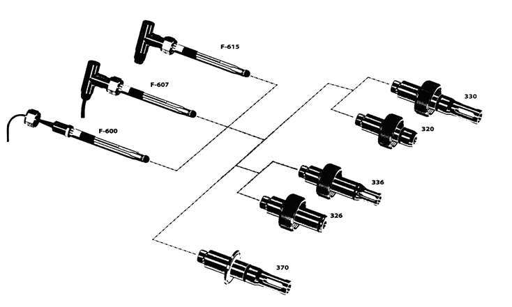 F615要另外選配電纜,F(xiàn)607和F600自帶2米電纜和BNC接頭。特殊長度和接頭請?jiān)谟嗀洉r(shí)指明。