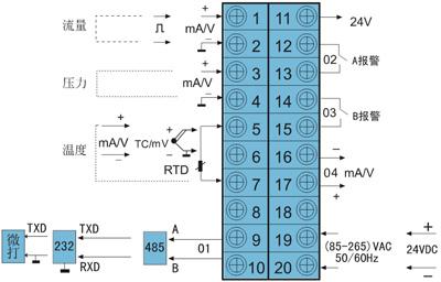 二、DY2000液晶顯示蒸汽熱量積算控制儀表接線圖