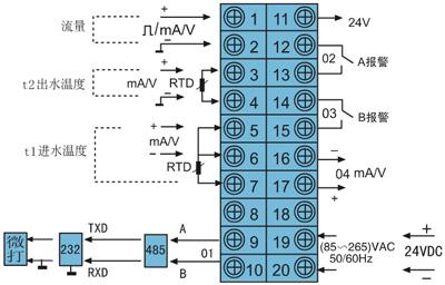 二、DY2000液晶顯示熱水熱量積算儀表接線圖